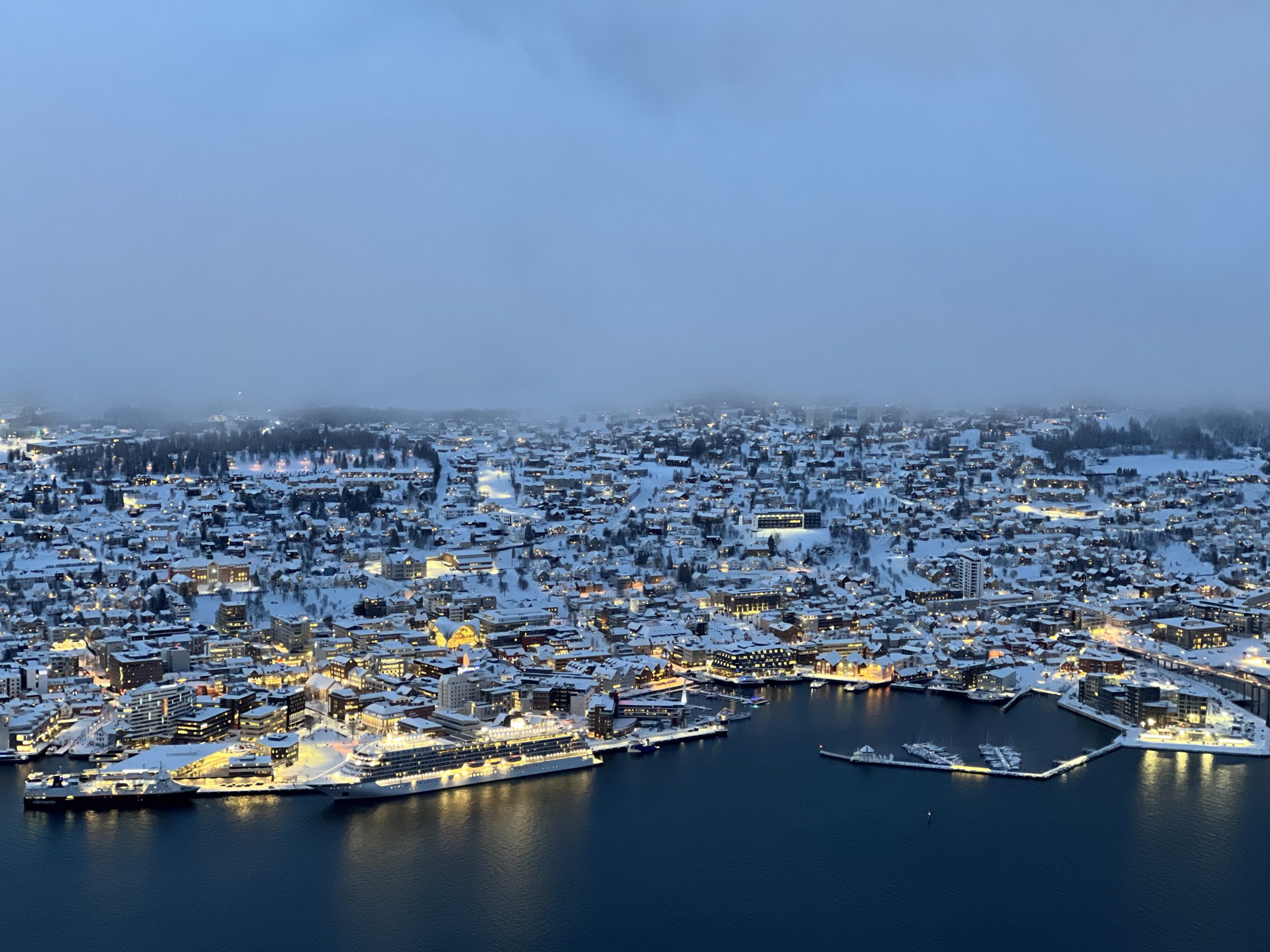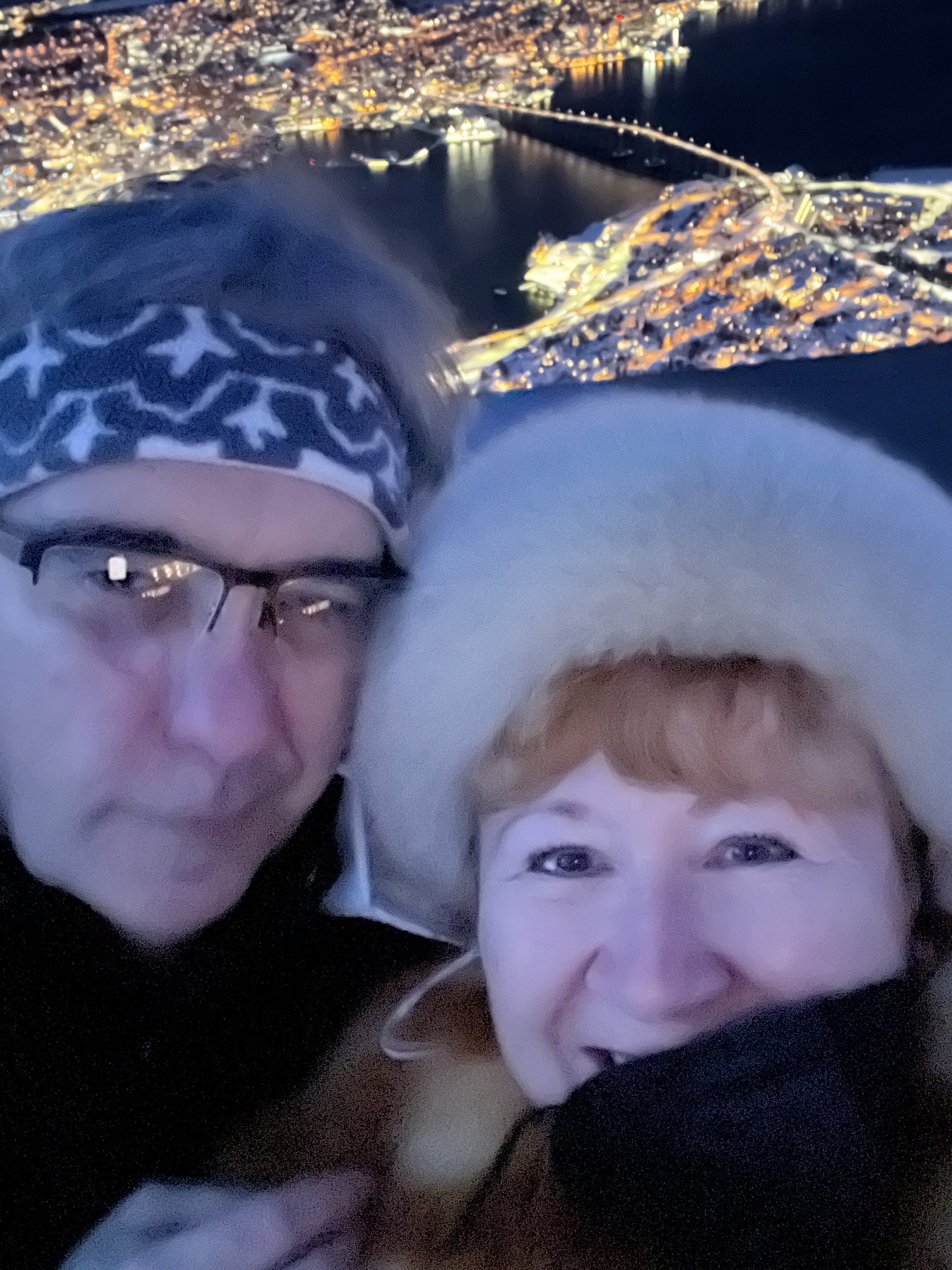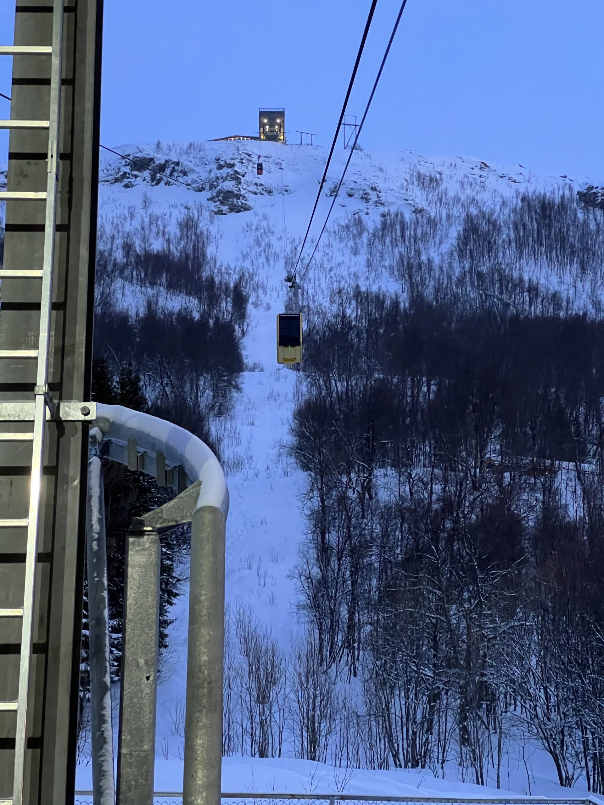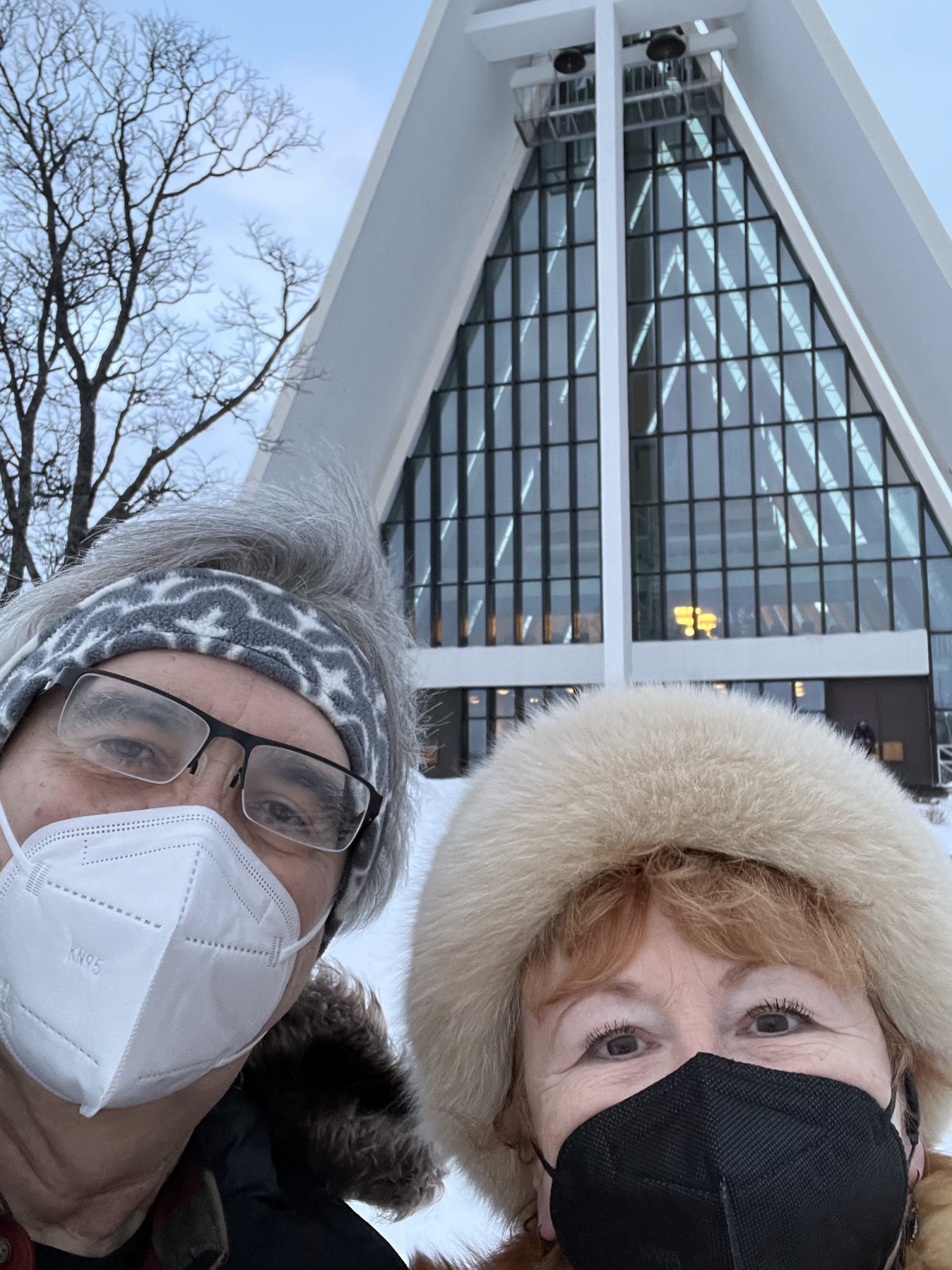 Our last day in Tromsø we visited their lovely Arctic Cathedral, which has the largest stained glass in Northern Europe, an image of Christ the Redeemer. The building is quite unique, similar in style to the Sydney Opera House, and highly visible from our ship and our next stop, the mountaintop we ascended by tramcar.