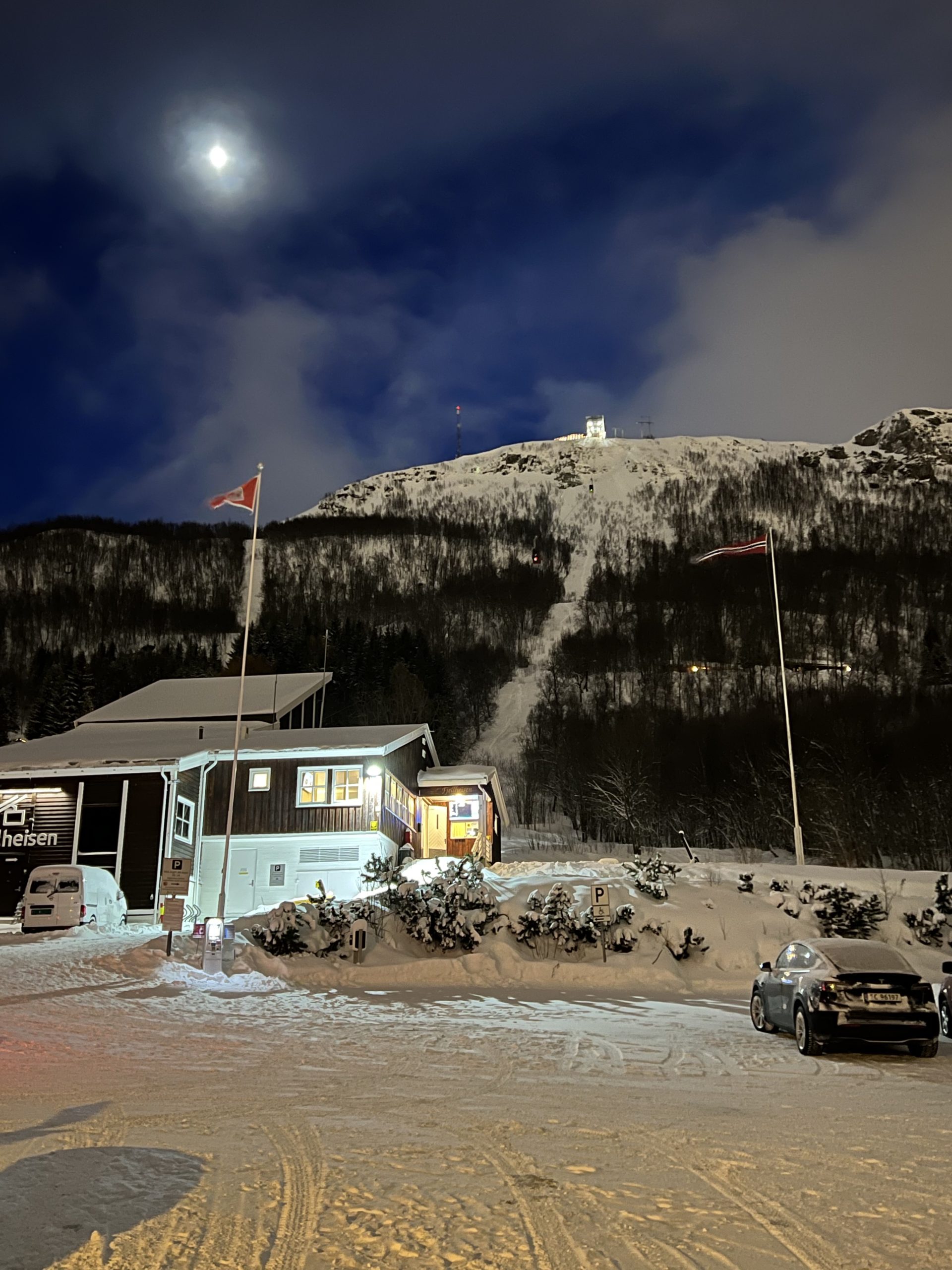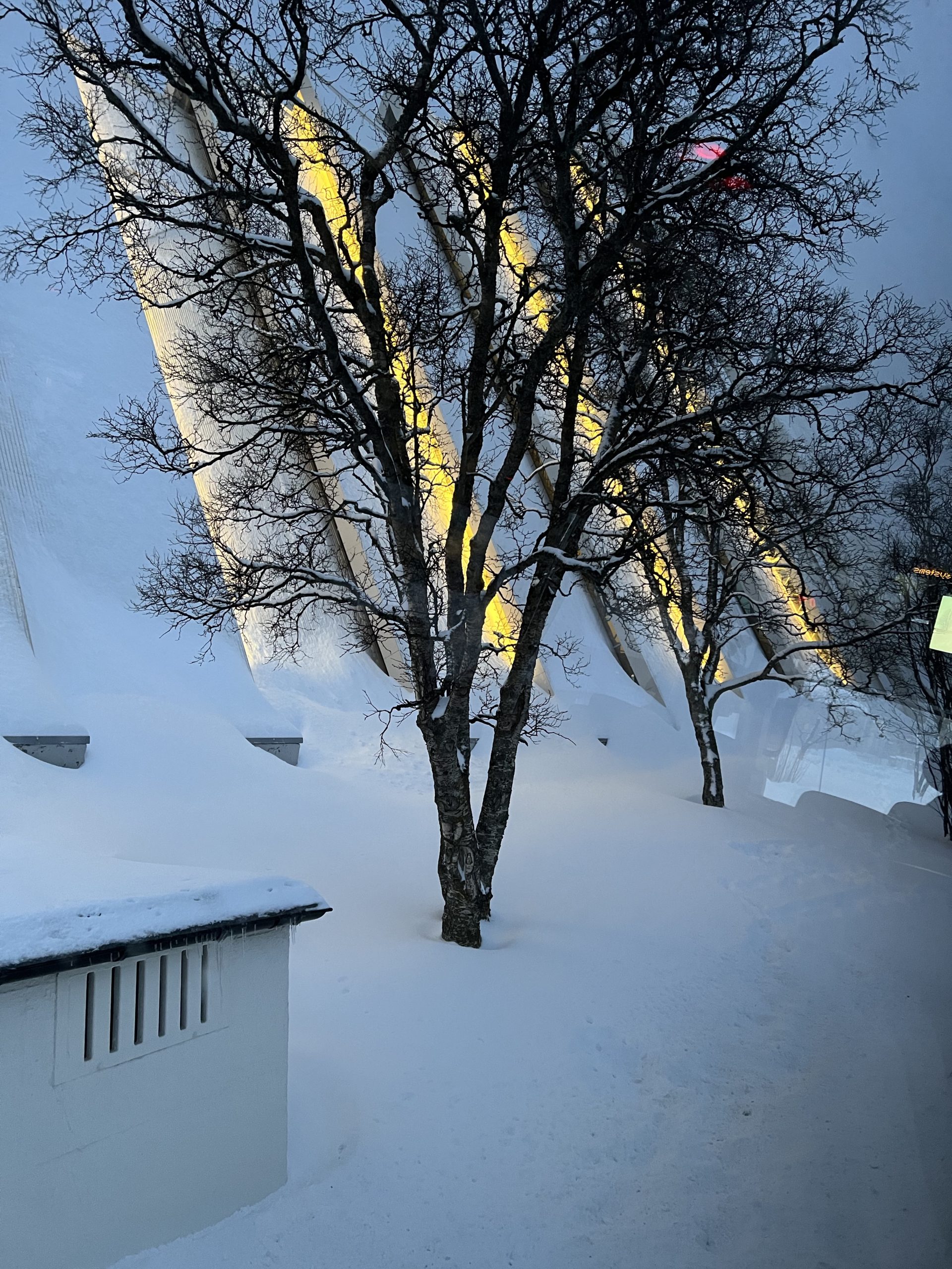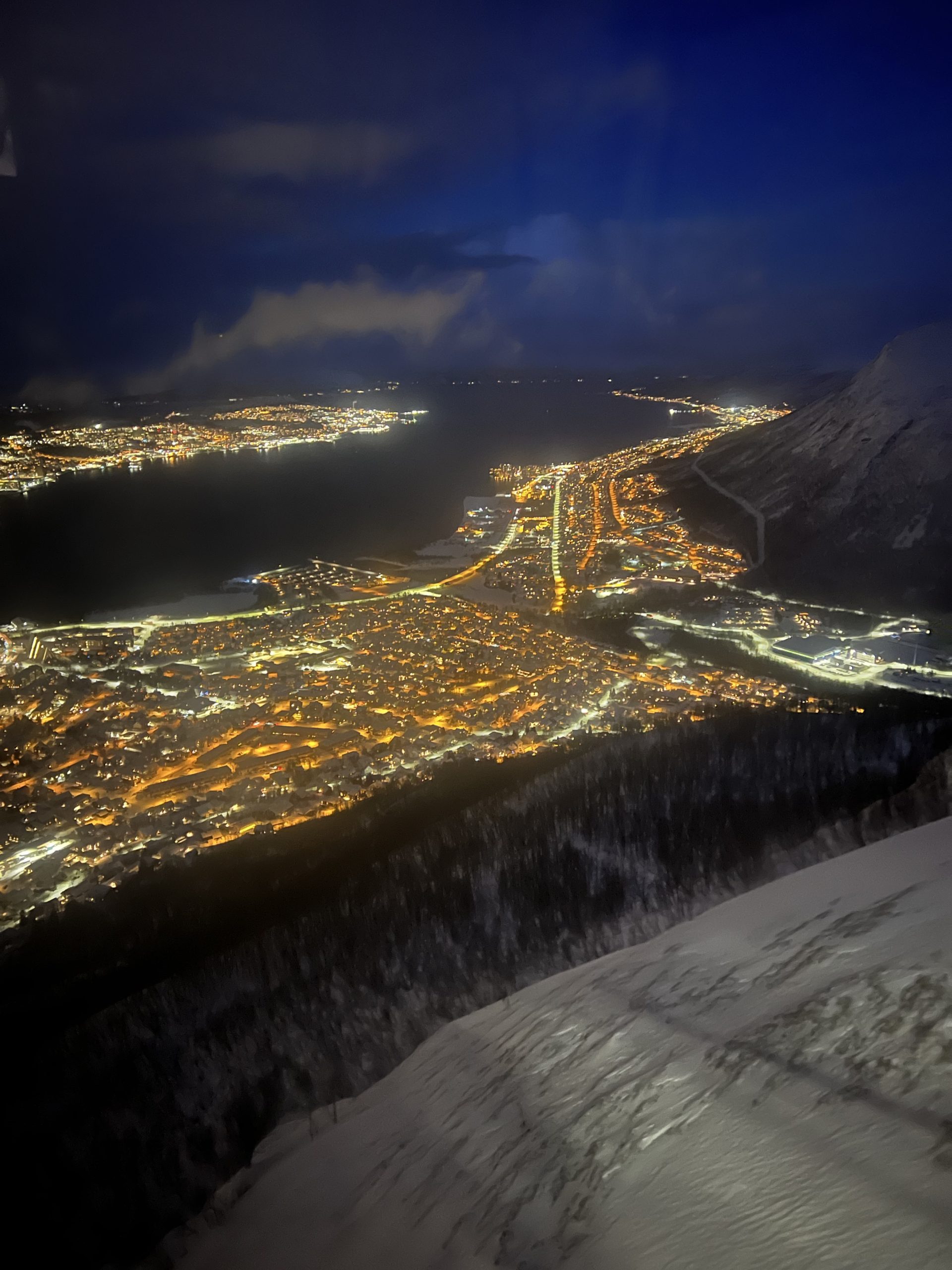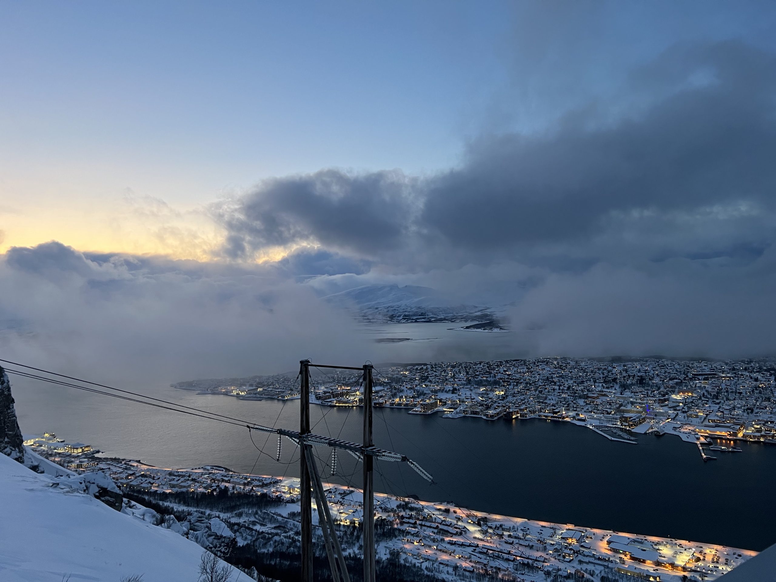 Our last day in Tromsø we visited their lovely Arctic Cathedral, which has the largest stained glass in Northern Europe, an image of Christ the Redeemer. The building is quite unique, similar in style to the Sydney Opera House, and highly visible from our ship and our next stop, the mountaintop we ascended by tramcar.