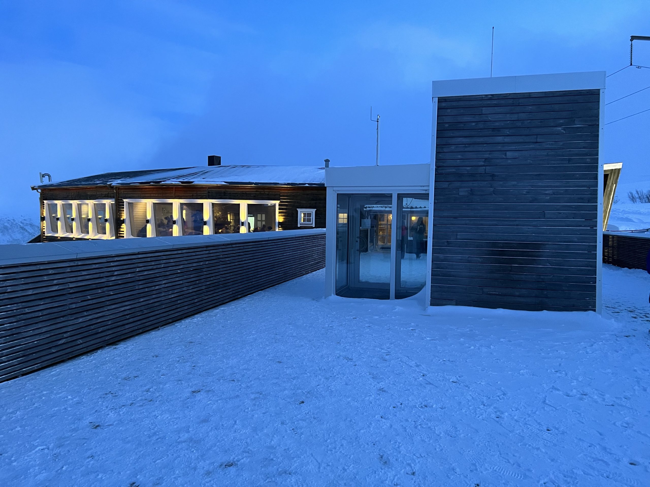 We were treated to tea or coffee and a nice cinnamon bun before our descent. But walking out the back of the building onto the mountain proved interesting, as the snow was over my head!